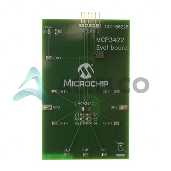 Tiga bahagian di sebelah kanan mempunyai spesifikasi yang sama dengan Microchip Technology MCP3422EV.